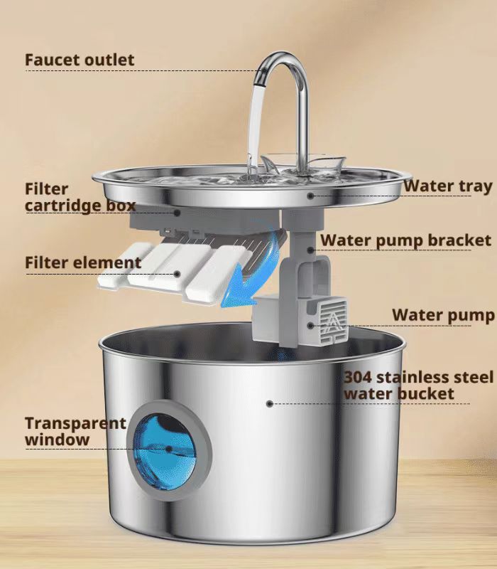 Key parts of the body are made of 304 stainless steel, which is rust-proof and prevents bacterial growth. It fundamentally avoids "black chin" caused by cats drinking dirty water, keeping cats healthy while drinking.